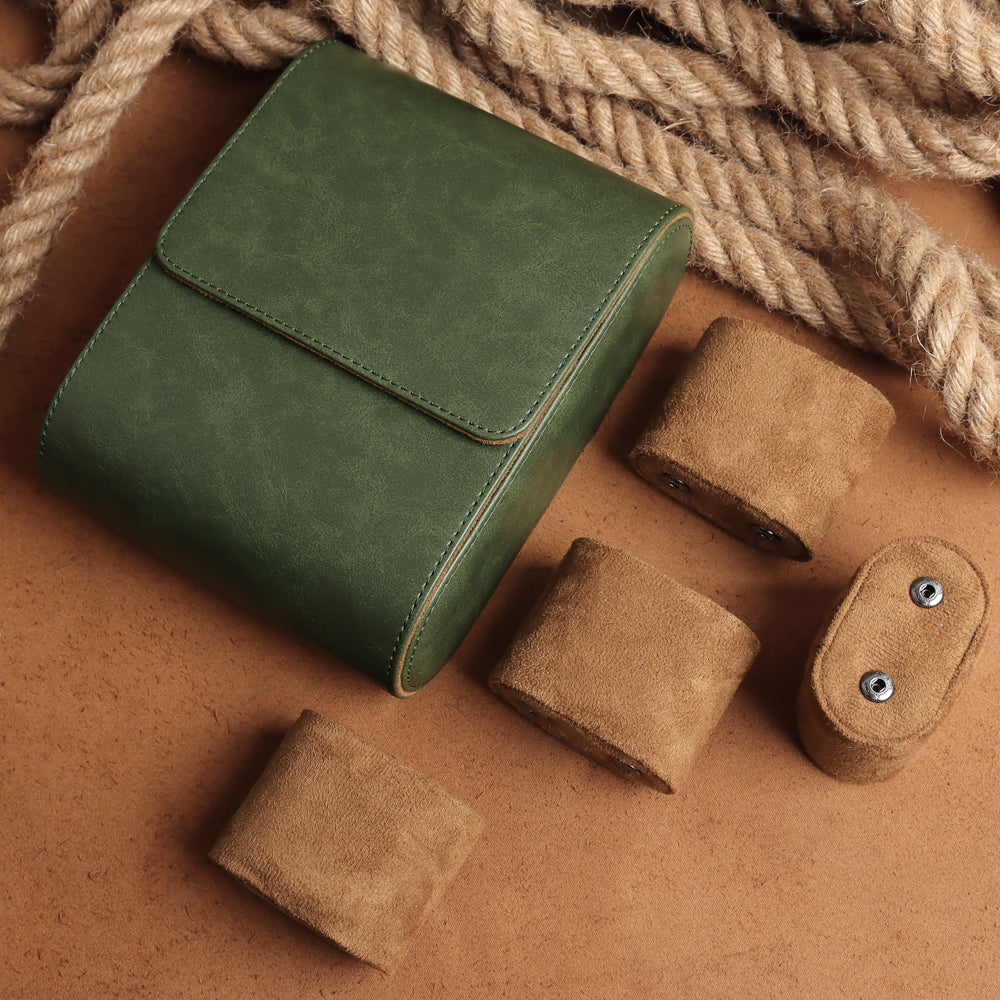 CSLRN Moss Green Top Grain Leather Watch Rolls With 4 slots